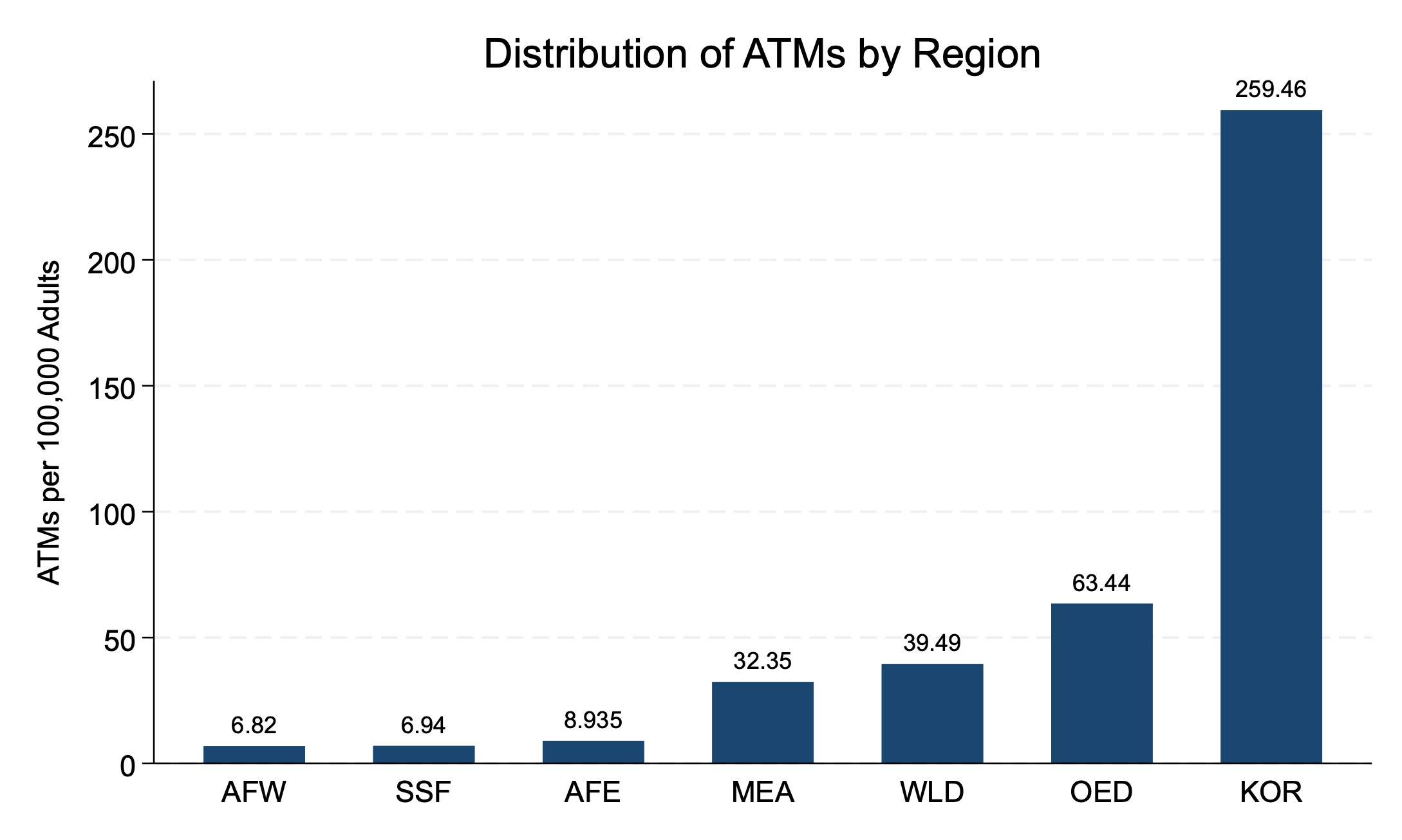 1. Distribution of ATMs per 100,000 Adults by Region