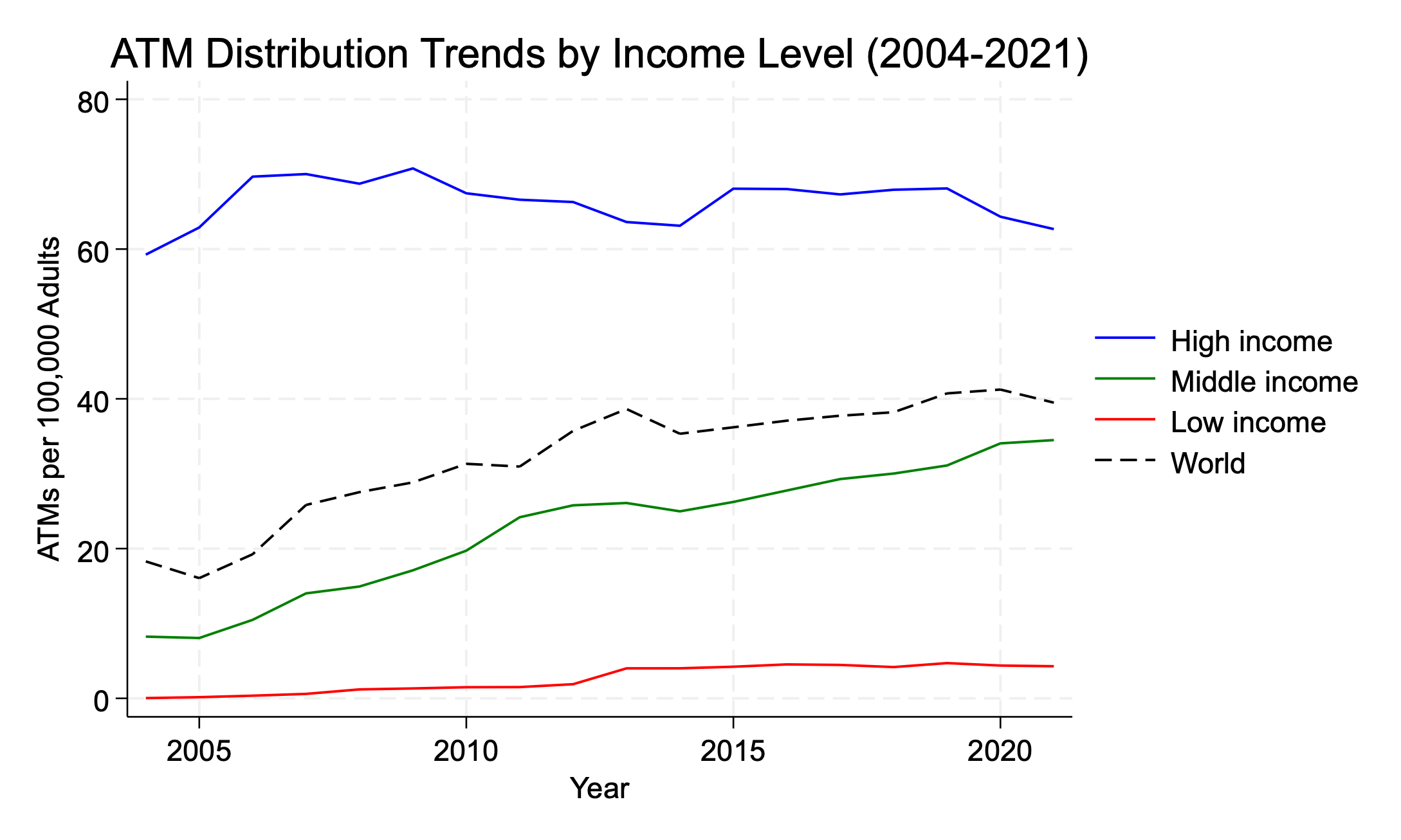 2. Distribution of ATMs per 100,000 Adults by income Level in 2021