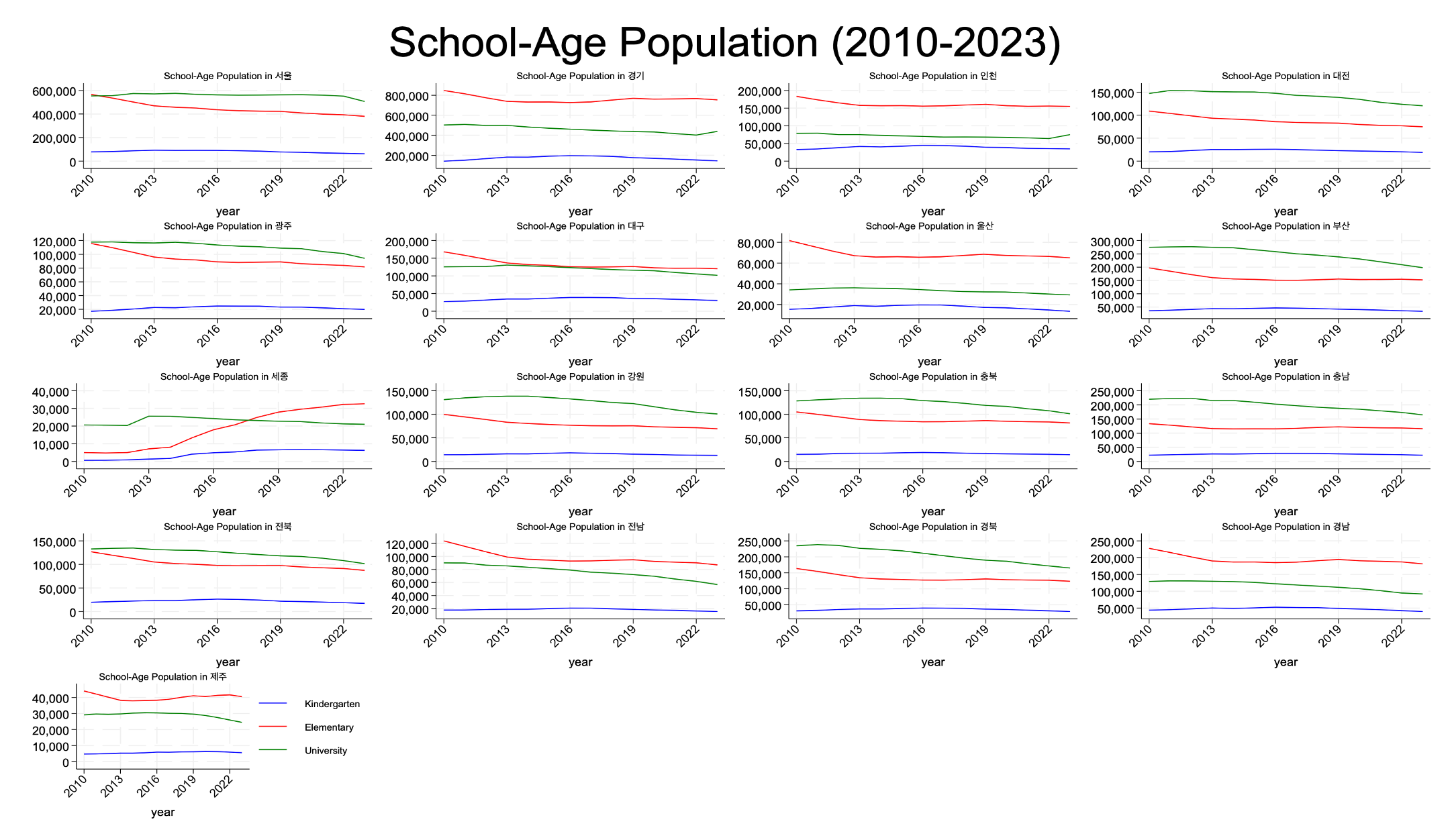 μλλ³ νλ ΉμΈκ΅¬ νν© Status of School-Age Population in Korean Provinces (2010-2023)