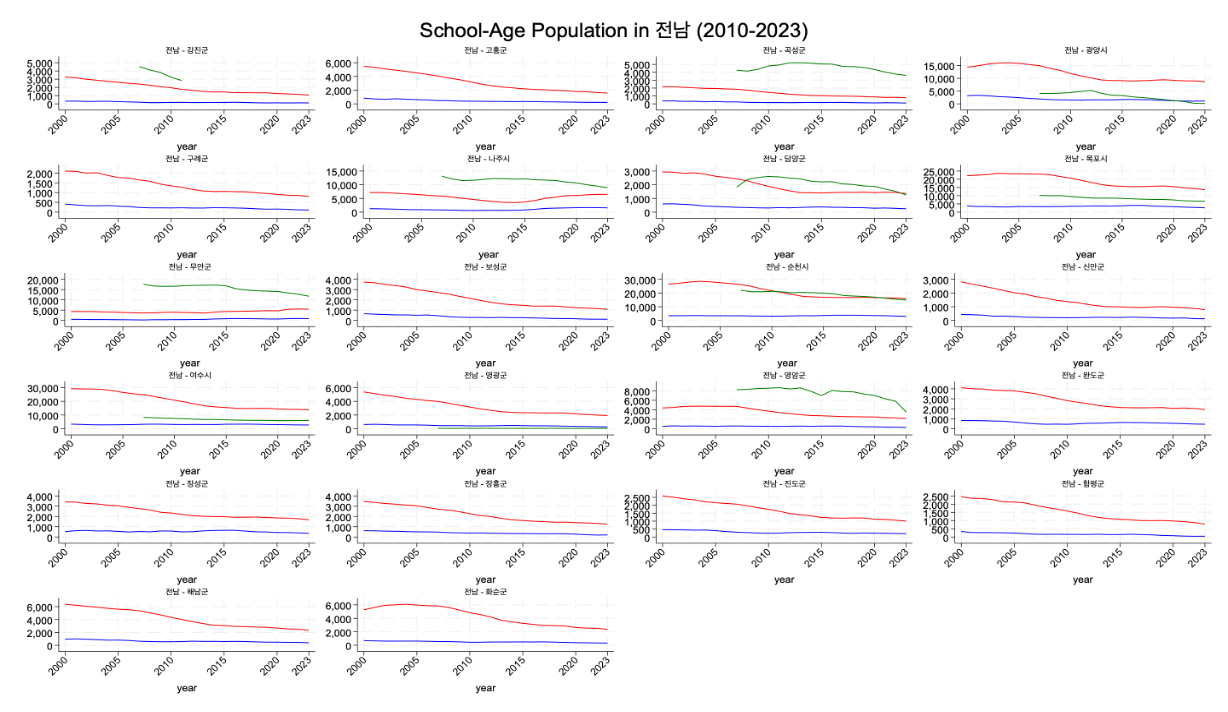 | μ λ¨ (Jeonnam) | - μ μΉμμ: κ°μ μΆμΈ - μ΄λ±νμ: μ΄λ±νμ μκ° κ°μνκ³ μμΌλ©°, κ°μ μλκ° λΉ λ¦ - λνμ: λνμ μκ° λμ λκ² μ€μ΄λ€κ³ μμ |