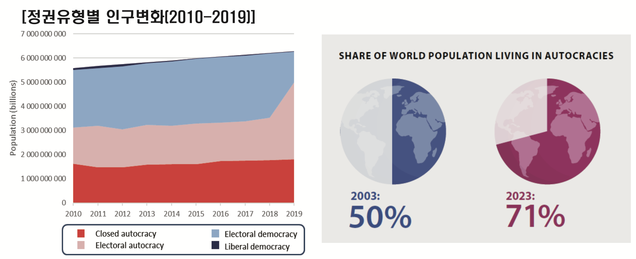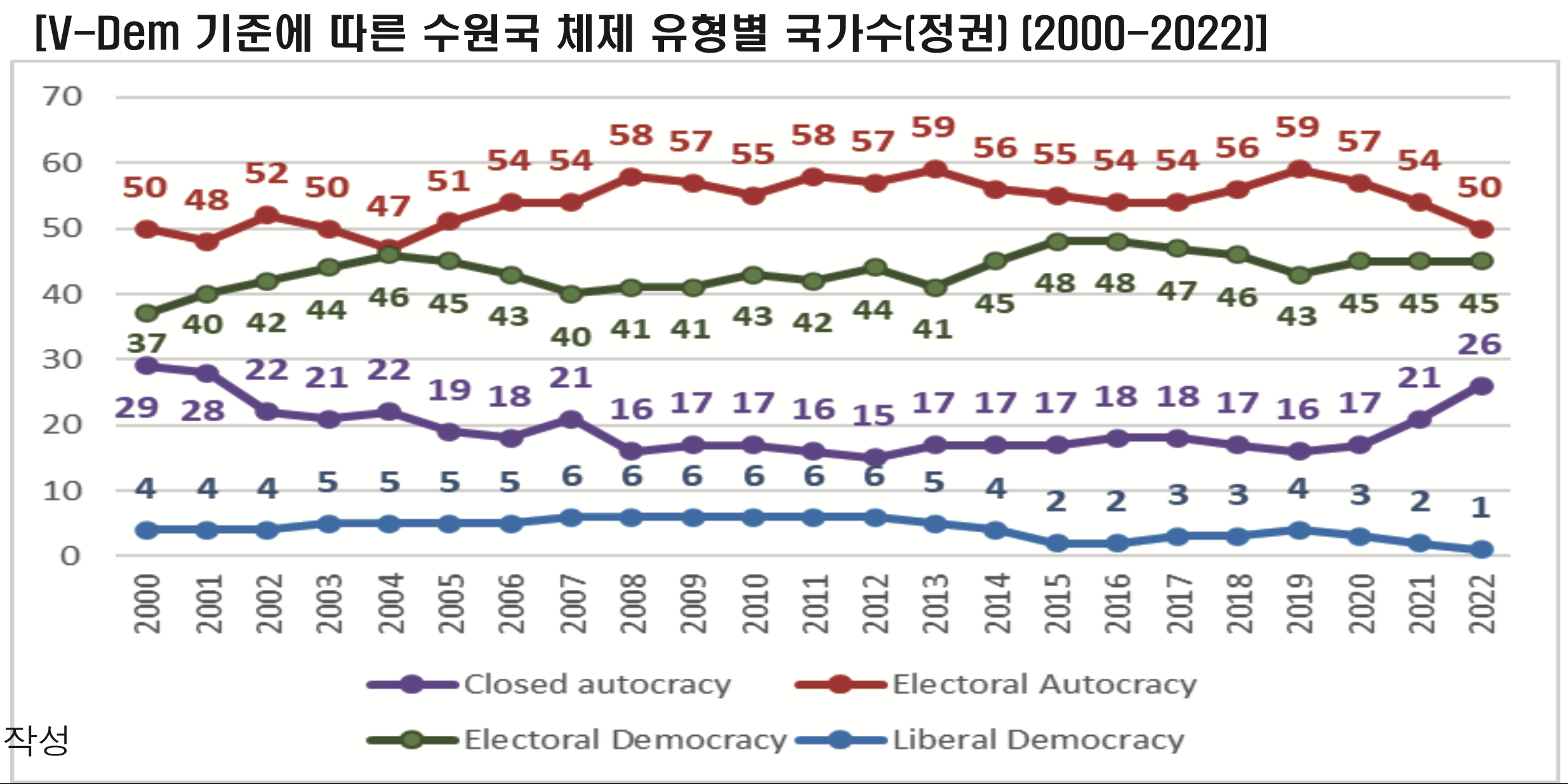 - Autocracy = Closed autocracy + Electoral autocracy