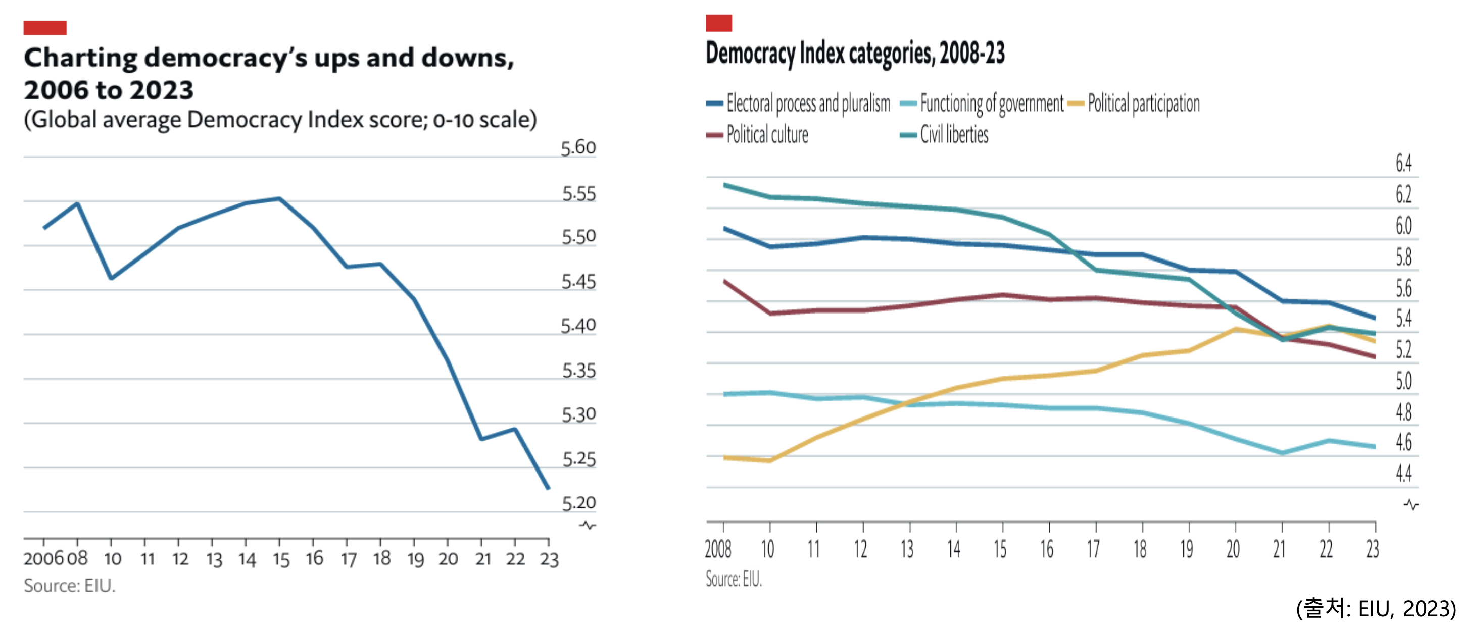 - Economist ๋ฏผ์ฃผ์ฃผ์ ์ง์ ๋ณํ (2006๋ - 2014๋ - 2023๋ )